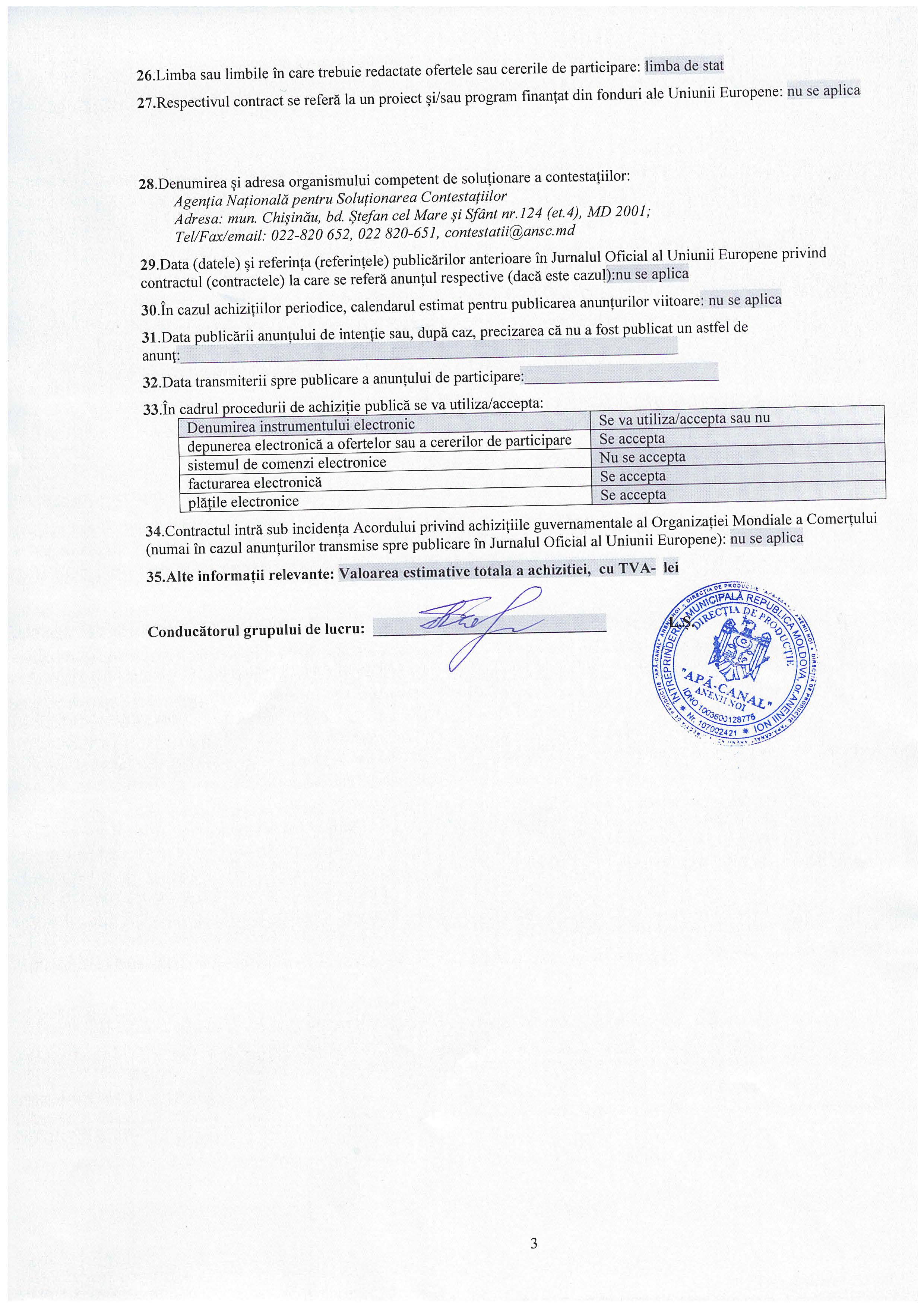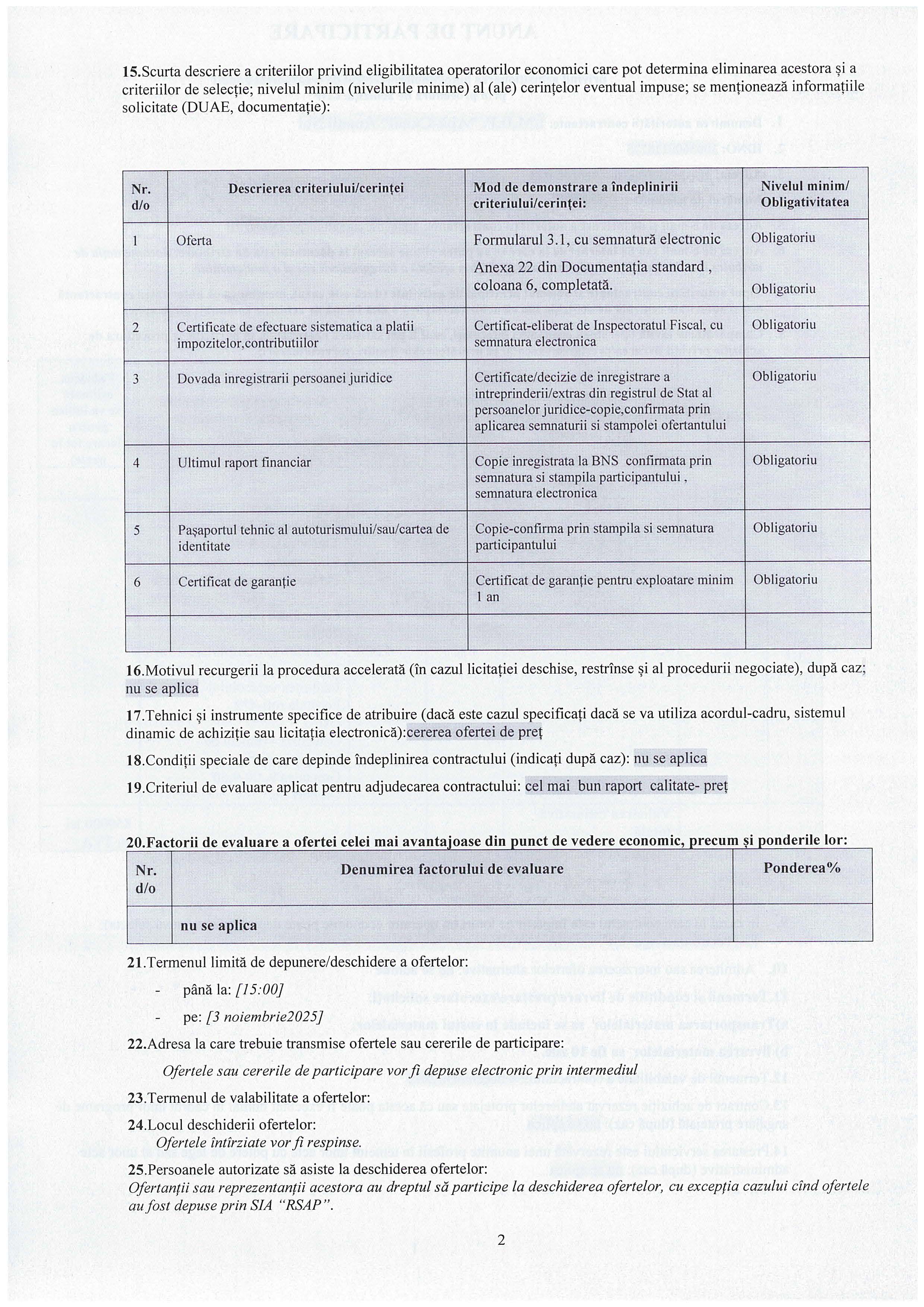 Termen limită pentru depunerea ofertelor: [3 noiembrie 2025, ora 15-00]